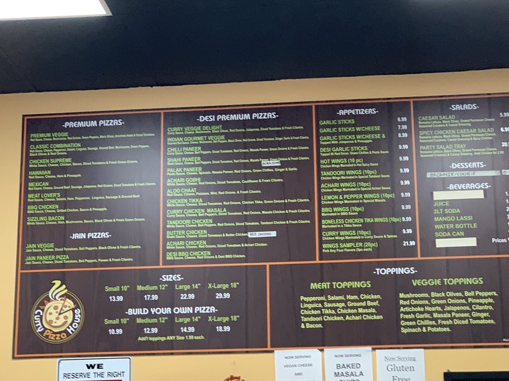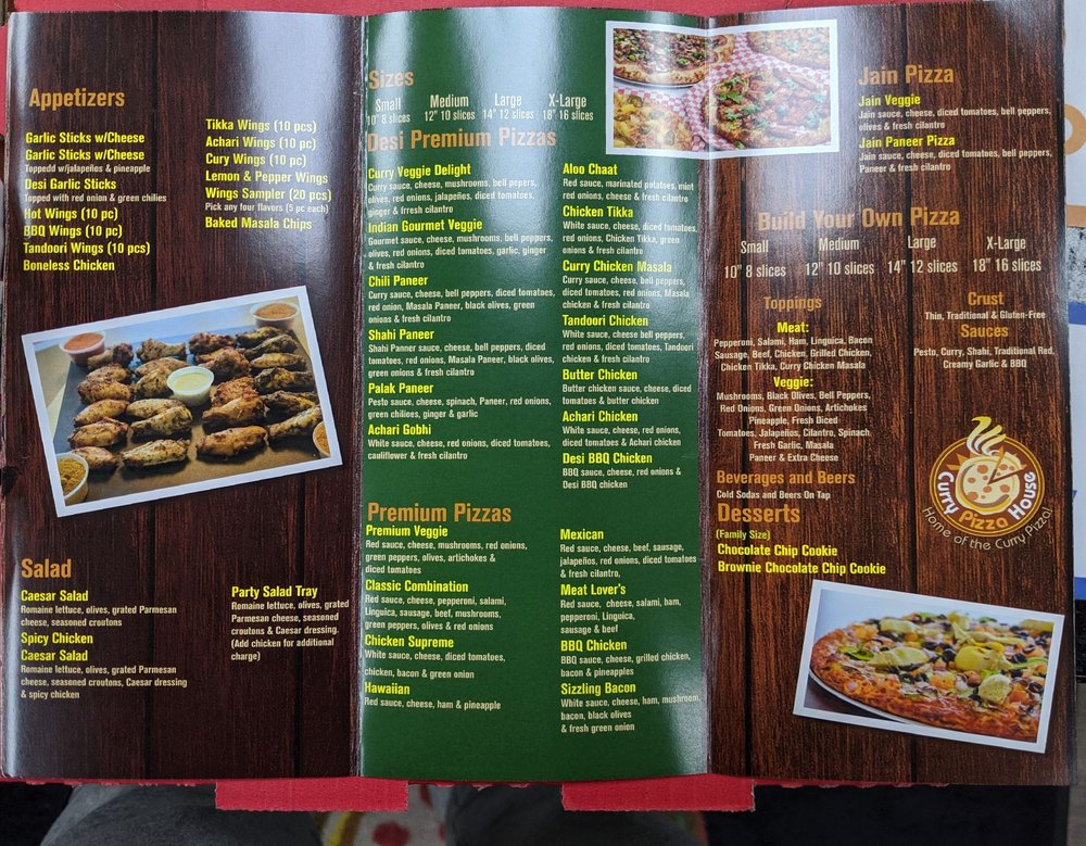“ We have been eating d food for quite a while. We have many good indian pizzas in bay area and this is one of the best places. Baked Masala chips are tasty and flavorful Garlic sticks with jalapeños and pineapple is a winner Hot wings are ok but tandoori wings are very good and achari wings were ok and curry wings were good Premium veggie pizza is very good Chicken supreme, pesto chicken and Margherita are awesome Curry veggie delight is ok as a taste but a lot is tricky Chicken tikka and tandoori chicken and butter chicken pizzas are MVP Chilli paneer is very good Gobhi pizzas were ok All in all certainly recommend this place and go hv fun T ”